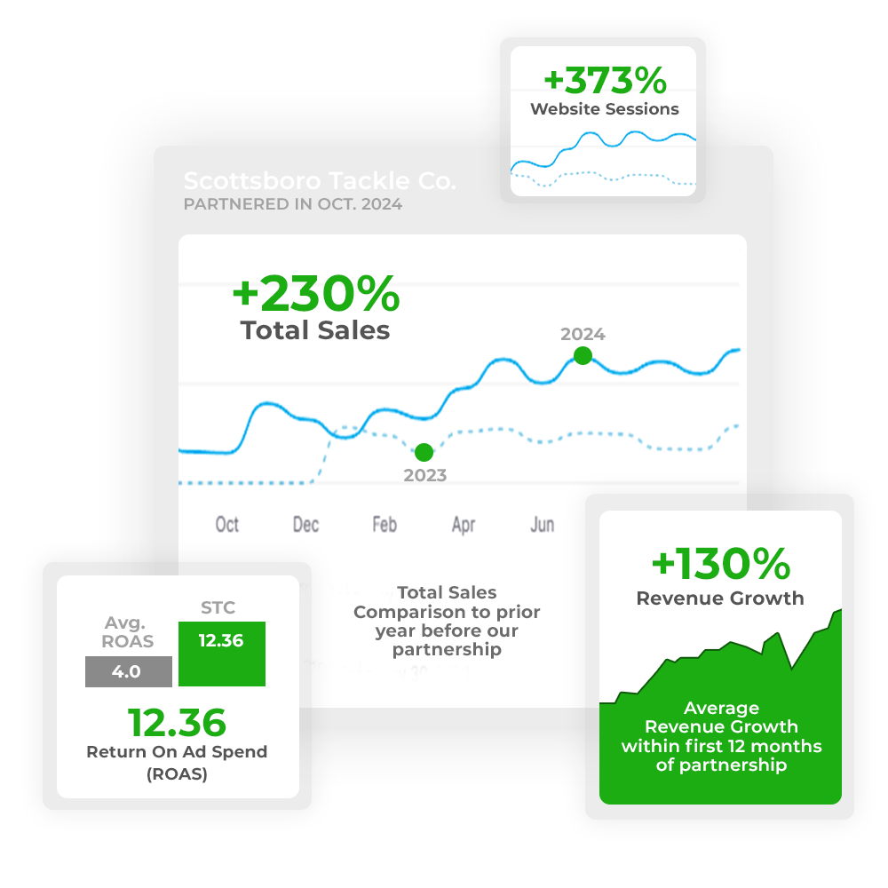 We help outdoor brands turn attention into action. From fishing and hunting to camping and tactical gear, we specialize in performance-driven marketing built for rugged products and real customers. We focus on uncovering what’s holding your growth back, tightening your funnel, and scaling what actually converts—so your marketing dollars work harder in the wild, not just on paper.